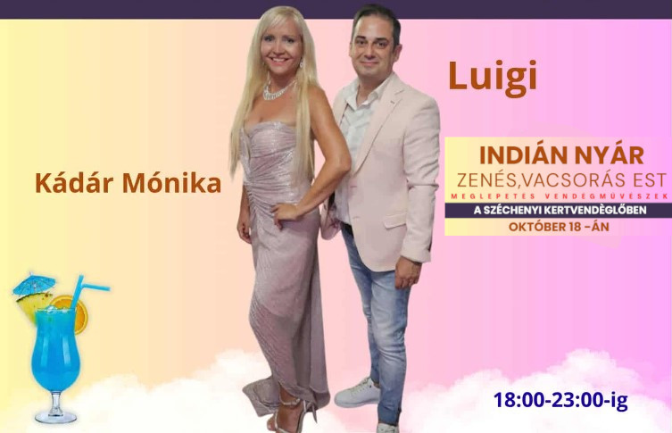 2025. október 18-án Kádár Mónika és Luigi közös zenés estjére invitáljuk kedves Vendégeinket! A koncertélményt egy ízletes vacsora is kiegészíti. Menü: Óriás sertéskaraj pankomorzsában, petrezselymes parázsburgonyával.