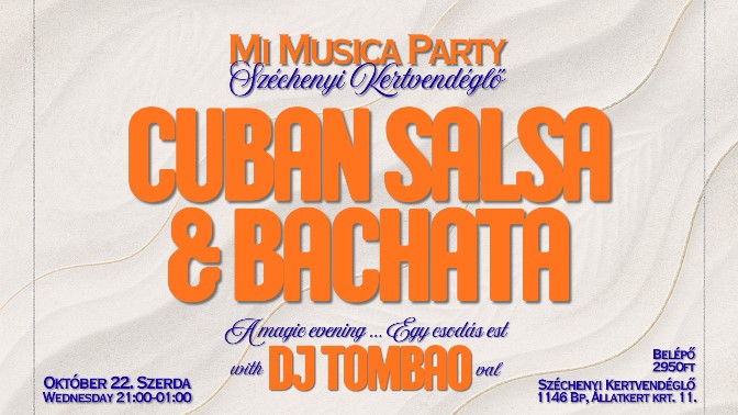 DJ Tombao visszatér a Szecskába! Felélesztjük a Szecskás hangulatot egy vérbeli salsa-bachata partival. Válogatott slágerek, eszméletlen hangulat, Te és a táncos barátaid. Gyere, töltődj tánccal!